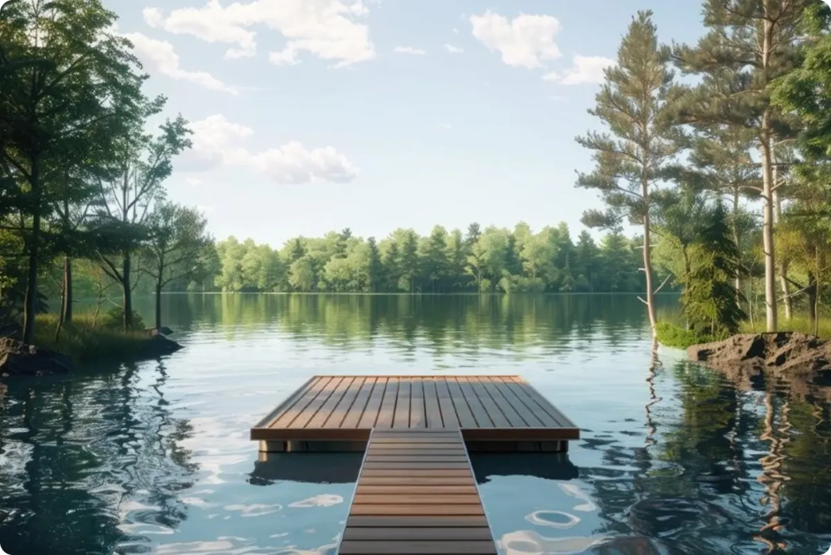 Heavy-duty docks are available in vinyl, cedar, and aluminum.
