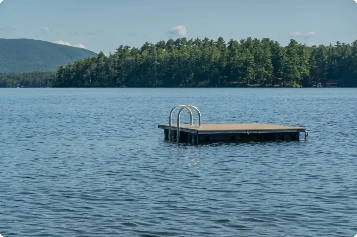 Our floating docks are great for both residential and commercial applications. We provide floating docks and swim floats and rafts for small residential settings on lakes and ponds, as well as a variety of floating dock configurations for commercial and industrial use. Our extensive commercial client list includes marinas and boat yards all over the states of Maine and New Hampshire.