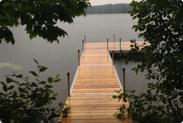 Heavy-duty docks are available in vinyl, cedar, and aluminum.