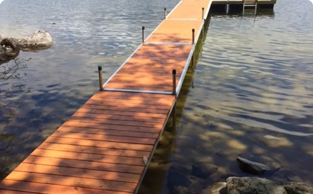 Heavy-duty docks are available in vinyl, cedar, and aluminum.