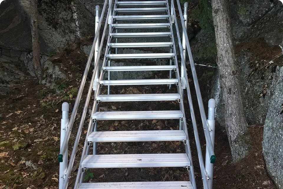 We manufacture both fixed and adjustable dock stairs and dock steps for easy access to your waterfront or dock, whether at home, camp, or a place of business.